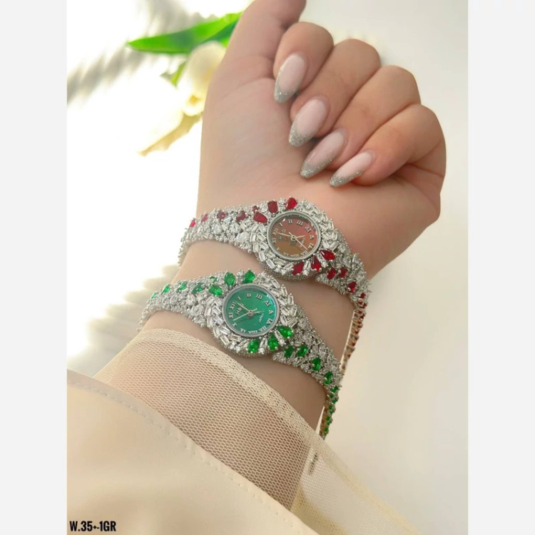 ساعت نفره جواهری نگین رنگی