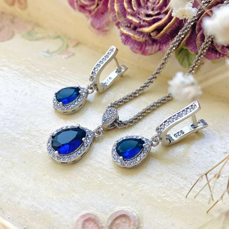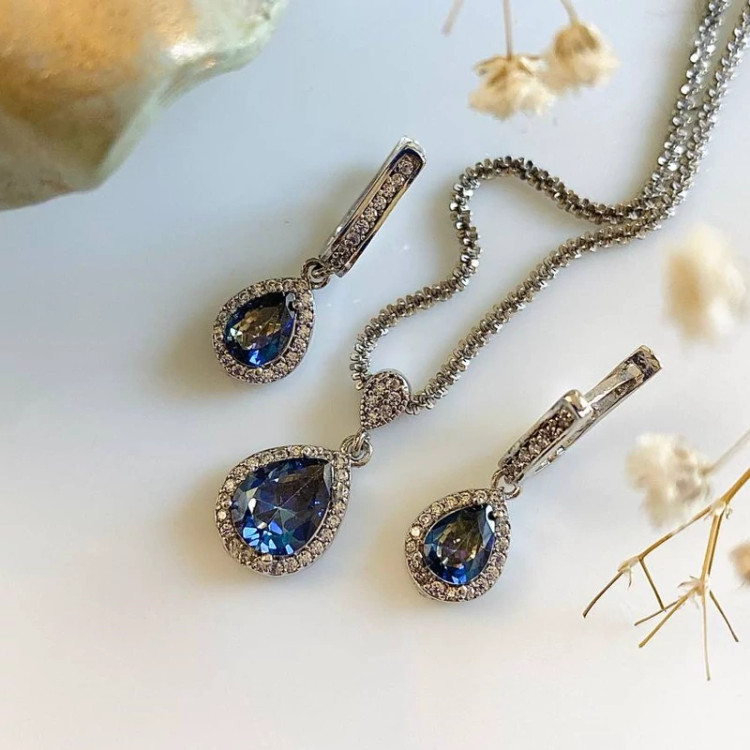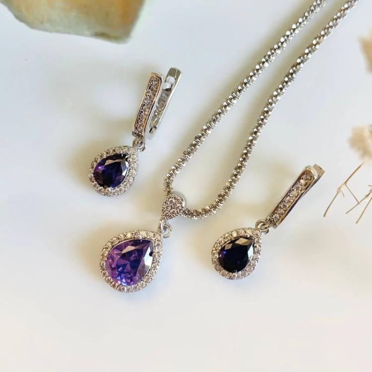 نیمست جواهری نقره نگین رنگی