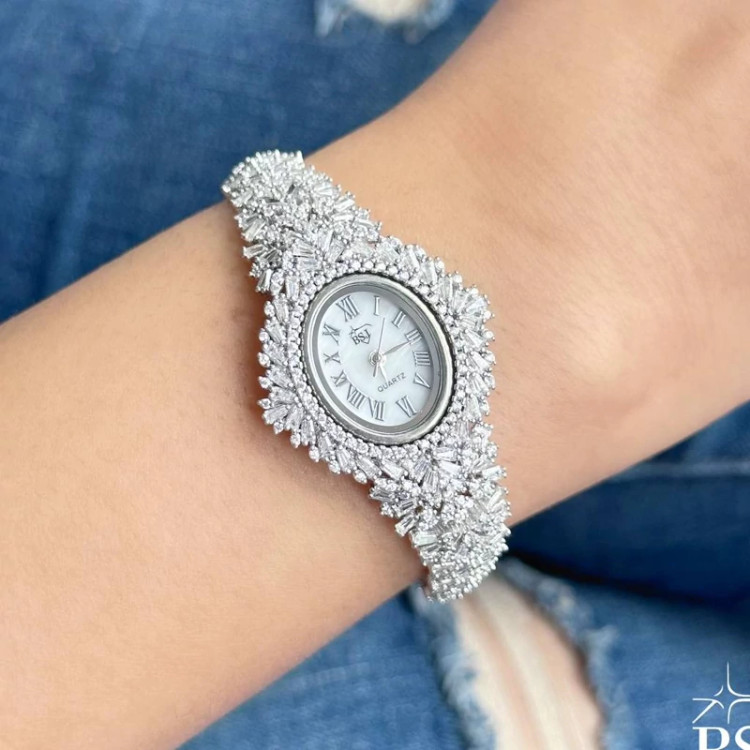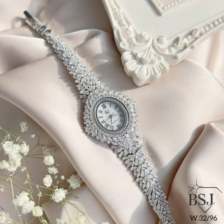 ساعت جواهری نقره خالص ۳۳ گرم. بدون ریزش نگین موتور ژاپن