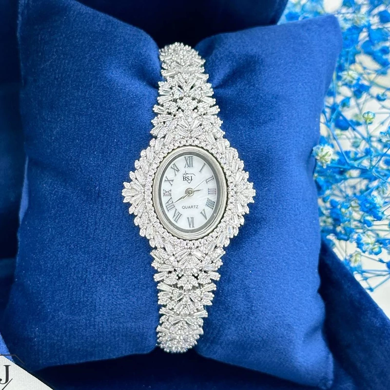 ساعت جذاب جواهری قالب طلا ⭕️ جواهری فاخر ⭕️بدون ریزش نگین ⭕️سنگ زیرکونیوم ⭕️آبکاری رادیوم ⭕️نقره ۹۲۵ عیار ⭕️تضمین کیفیت کالا ⭕️فروش بافاکتور معتبر ⭕️ارسال کل کشور ⭕️لطفاقبل از سفارش موجودی بگیرین