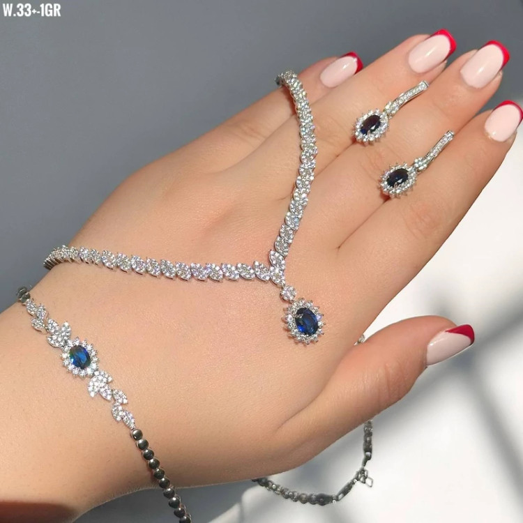 سرویس جواهری نقره کبود زنانه